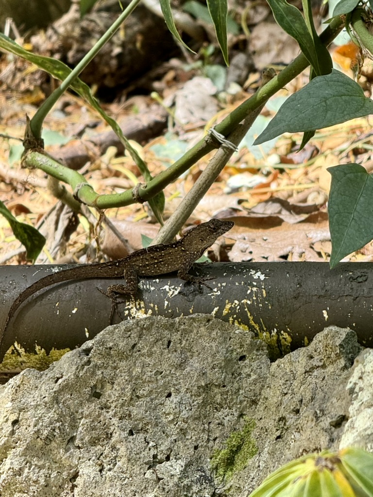 On the walk back to the car, we exchanged greetings with the many little Anolis sagrei lizards we encountered along the path.