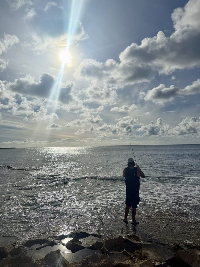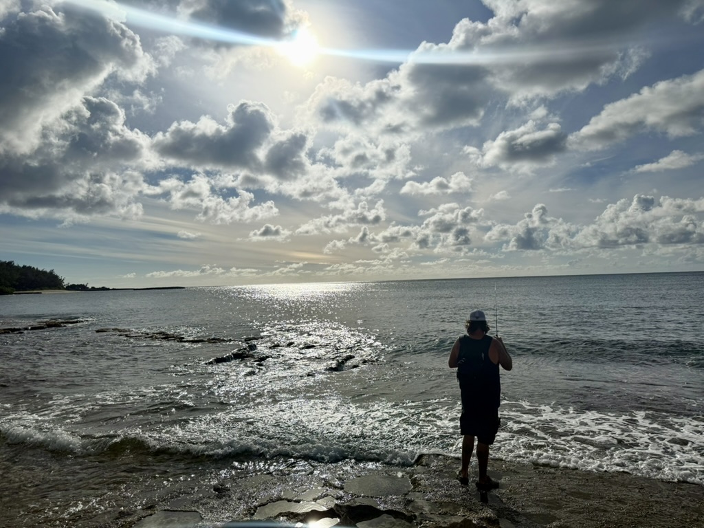 In the afternoon, AJ and I snuck back to our room for a quick nap before meeting Jon and Andi on the shoreline. Jon had a line cast in the water while Andi explored the tide pools. We even spotted a few sea turtles bobbing along the shore.